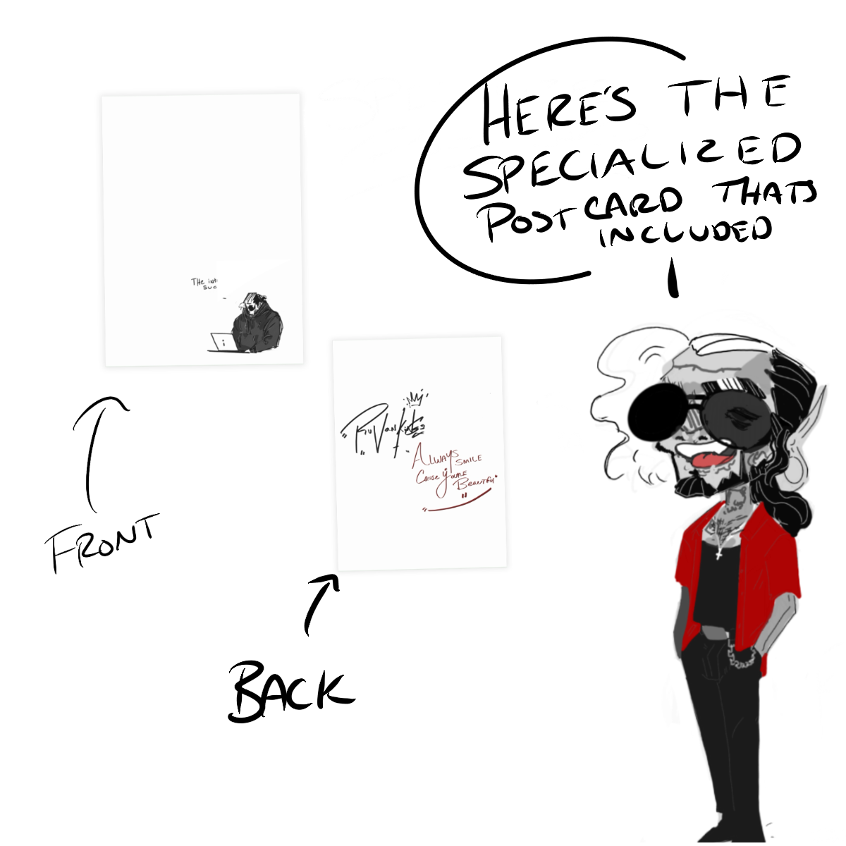 4.25” x 5” glossy art print, custom postcard, and sticker